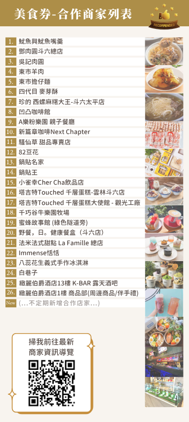 8.本券優惠期限至2026年11月30日,逾期則可依券面金額折抵當次消費金額。