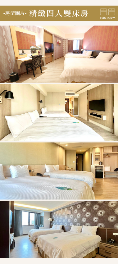 1.本券可於平日入住【精緻四人雙床房】乙晚。